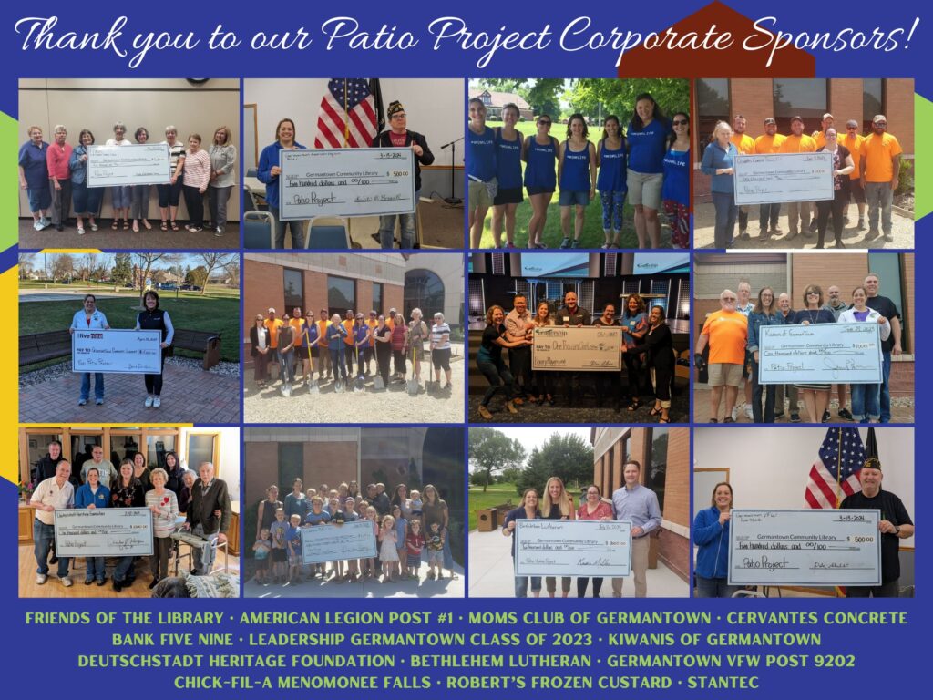 The library would like to thank Cervantes Concrete Services LLC, the Village of Germantown Public Works and Engineering departments and numerous businesses and community members that made this project possible. Corporate sponsors include: