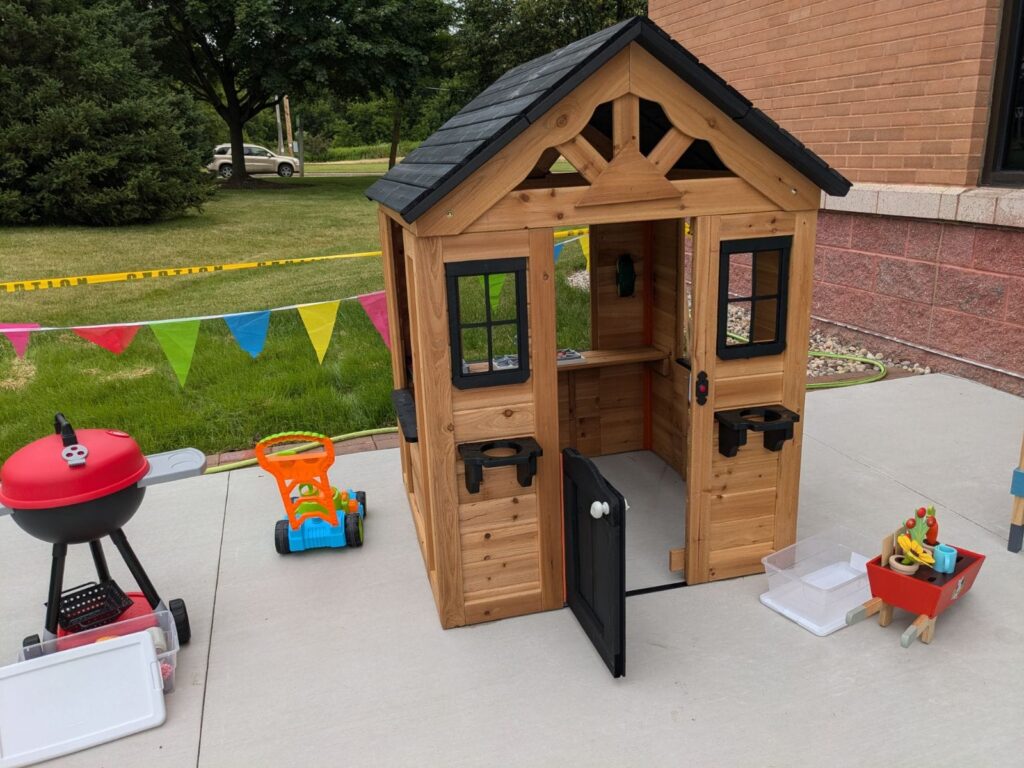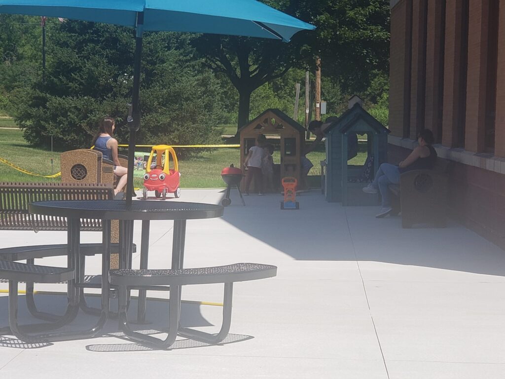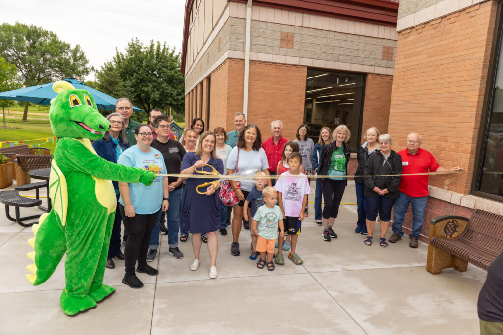 Our Patio Ribbon Cutting Ceremony with the Germantown Area Chamber of Commerce was held on Friday, June 28, 2025. The project includes concrete work by Cervantes Concrete Services LLC – which doubles the previous footprint and adds and ADA pathway and area for a bike rack. Additional items include two new picnic benches, play houses, a musical instrument area and other early literacy items.