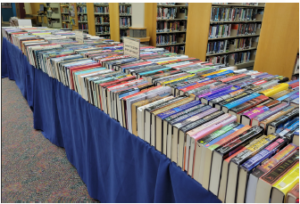 These are themed sales (Adult Fiction, Youth/Young Adult, Non-fiction, etc.). Pop-up sales are in the main aisle of the library.